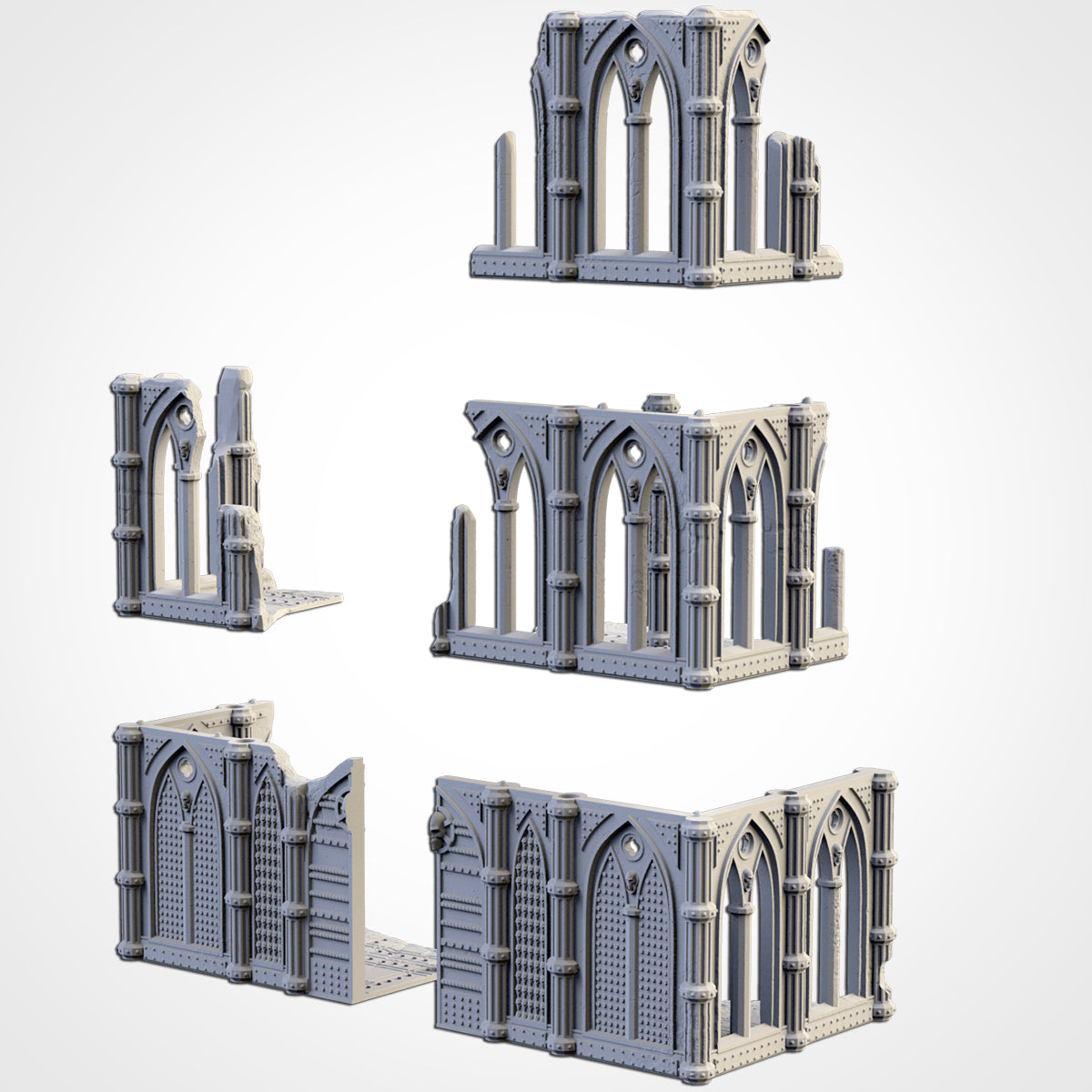 Cathedral Building Ruins Set 1 | 28mm 32mm Terrain Scenery hammer war | Txarli BBT