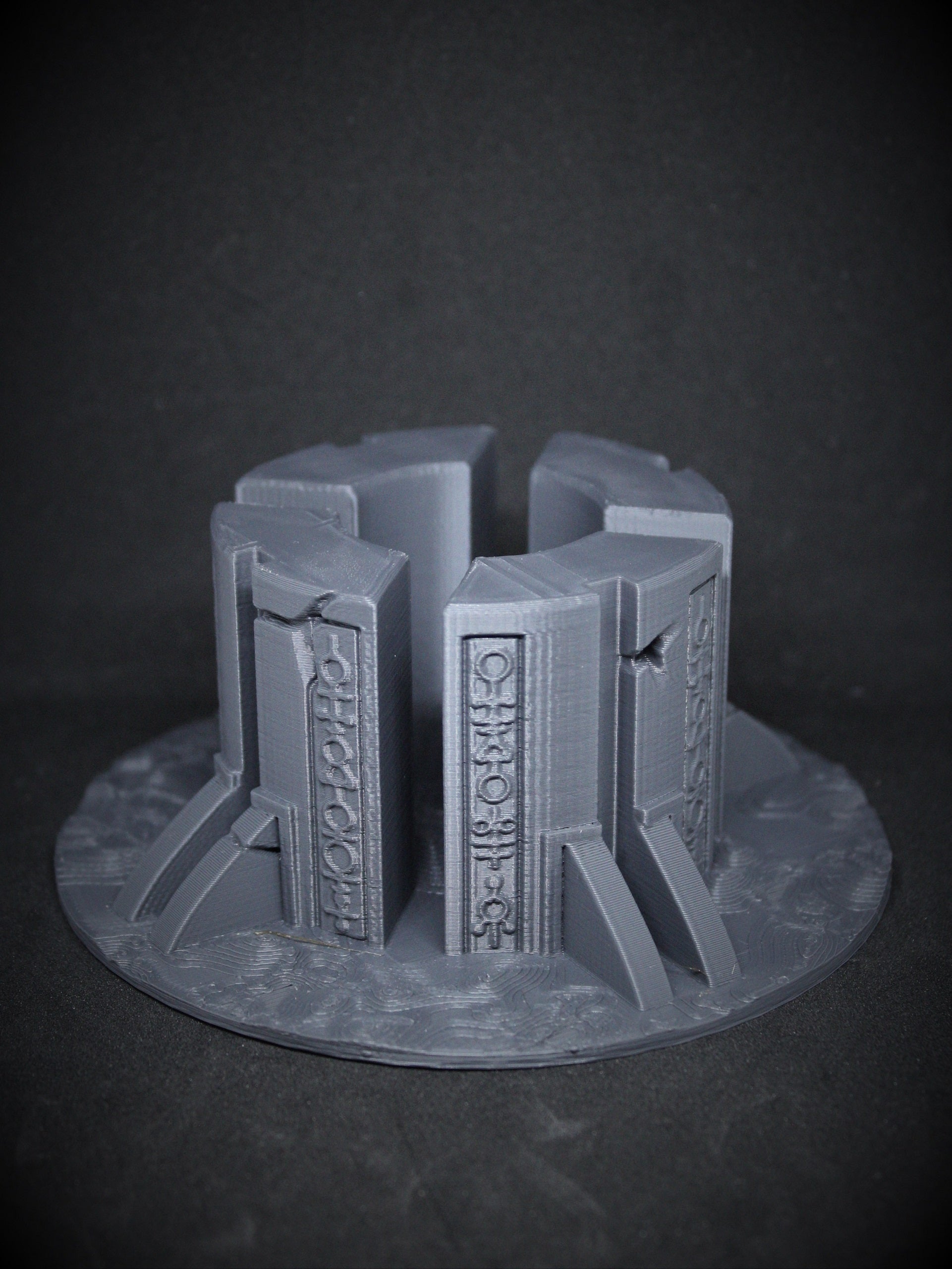 FULL Set: A set of 4 pillars (167mm tall), a tomb/crypt (50mm tall, 120mm long, 82mm wide), AND a generator on a mm base (50mm tall, 115mm diameter base). (Discount included)